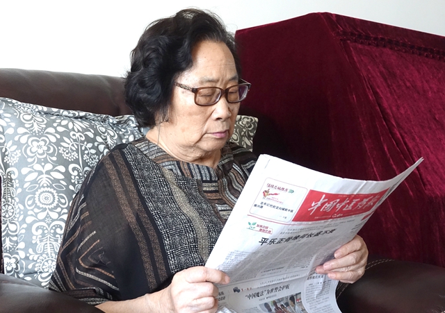 屠呦呦在读《中国中医药报》 廖福龙摄
